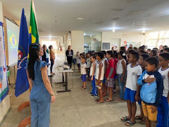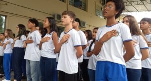 Todas as unidades de ensino, nesse dia histórico, cantaram lindamente o Hino, prática que já é executada nas escolas. Campo e cidade, em posição de respeito, entoaram a canção. Ao som do saxofone, do violão e do teclado, uma minibanda foi formada na EMEF Veneciano para o momento. Já na EMEIEF Francisco Secchin, as professoras desenvolveram atividades relacionadas ao tema, levando os alunos a criar desenhos de parte da letra que compõe a música.