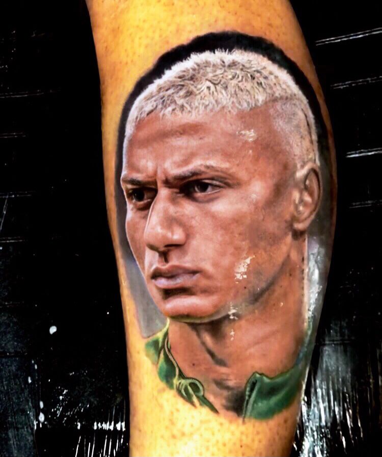 Prezando por um estilo de realismo, principalmente de animais e pessoas, ele já foi premiado 170 vezes em convenções nacionais e internacionais e disse que fez essa tatuagem a pedido do André, que é fã do Richarlison.