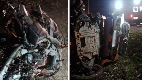 Um homem de 40 anos, que não teve o nome divulgado, morreu em um acidente entre uma caminhonete Hilux e a moto que ele pilotava na noite deste sábado (1º), na rodovia ES 421 na zona rural de Conceição da Barra, no Norte do Espírito Santo. O motorista do carro, a esposa e a filha, duas mulheres, e outro homem ficaram feridos e foram socorridos pelo Samu/192 para um hospital de São Mateus.