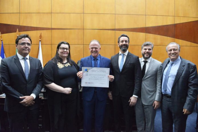 O governador reeleito do Estado, Renato Casagrande, e o vice-governador eleito, Ricardo Ferraço, foram diplomados na tarde desta segunda-feira (19), em solenidade realizada no Tribunal Regional Eleitoral do Espírito Santo (TRE-ES). A diplomação é uma cerimônia organizada pela Justiça Eleitoral para formalizar a escolha dos eleitos nas eleições e marca o encerramento do processo eleitoral. A posse dos eleitos acontece no próximo dia 1º.
