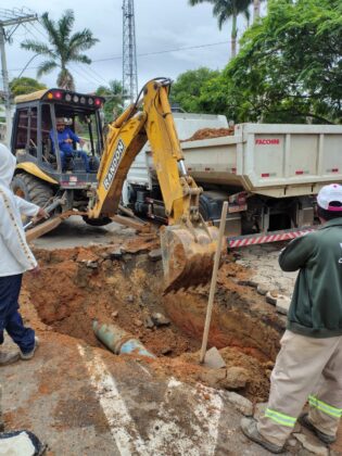 Na manhã desta terça-feira (21), funcionários da Cesan, companhia responsável pela distribuição de água potável na cidade, estavam no local realizando o reparo do problema.